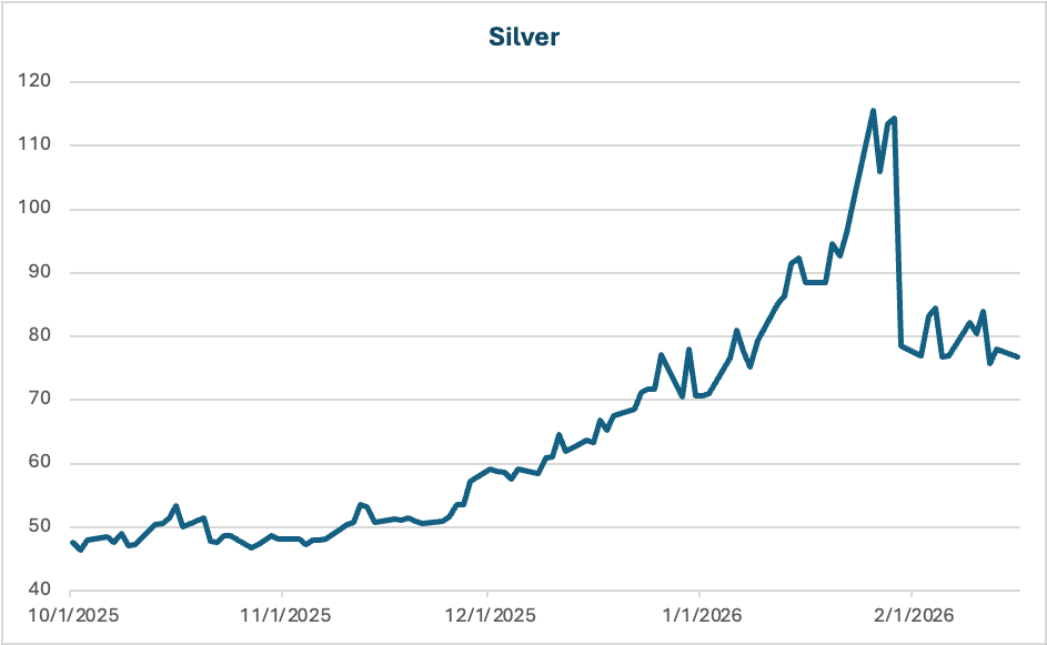 Un esempio lampante è il recente spostamento dell’argento. Il 30 gennaio di quest’anno la commodity è scesa fino al 36%, chiudendo a meno 26%. Sostengo che parte del calo drastico possa essere attribuito alla quantità di leva che alcuni ETF hanno su determinati futures e swap. Non necessariamente solo perché il sottostante aveva corso troppo.